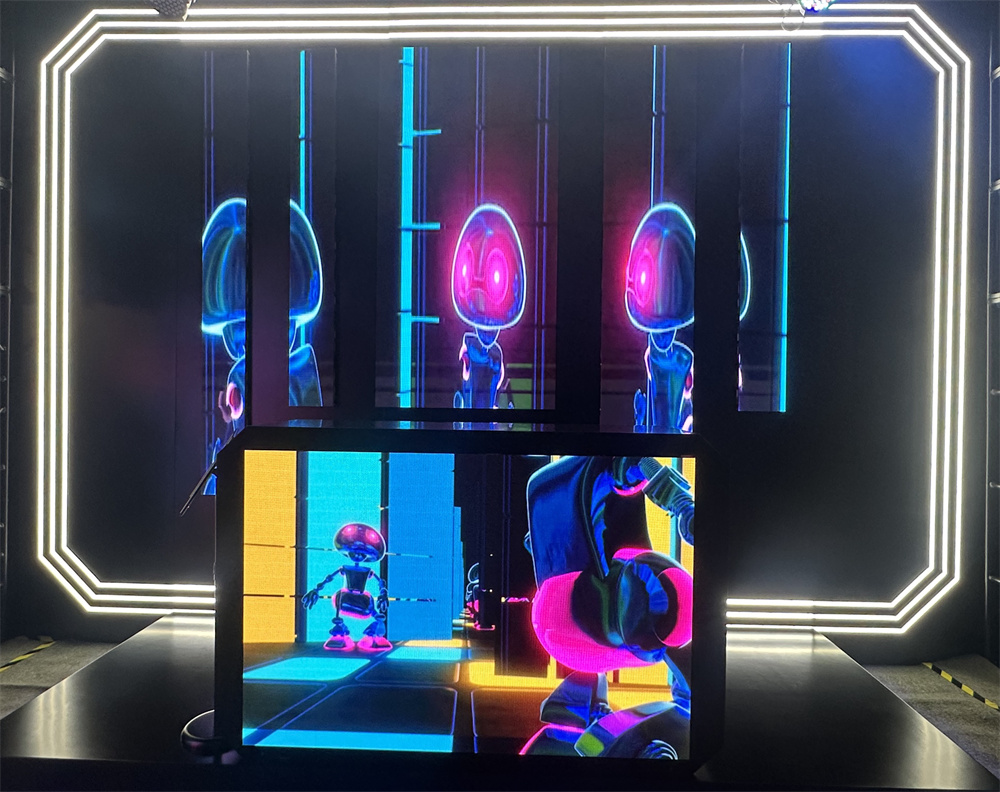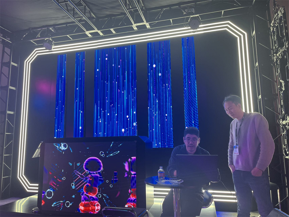 由创意产品E-Swan、E-Corner搭配Pilot Pro吊装而成的三层火炬造型创意屏吸引了众多观众的目光。产品不仅以其灵活设计、便捷操作等特性赢得了市场的青睐,更以其多样创意拼接方式,展现了其在多种租赁显示活动场景中的广泛应用潜力。