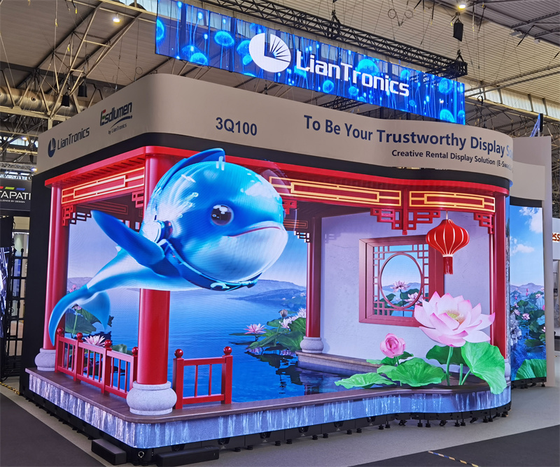 高端租赁产品 E - Sapphire 引人注目,由 Dazzle IV 、E - Corner & E - Swan 拼接的波浪创意屏同样吸睛。此屏箱体轻薄,安装维护便捷,能兼容拼接、创意组合,搭配裸眼 3D,显示效果极佳。更有“黑悟空*小联跃天门”定制 IP内容,融合科技与艺术,引得现场顾客纷纷侧目。